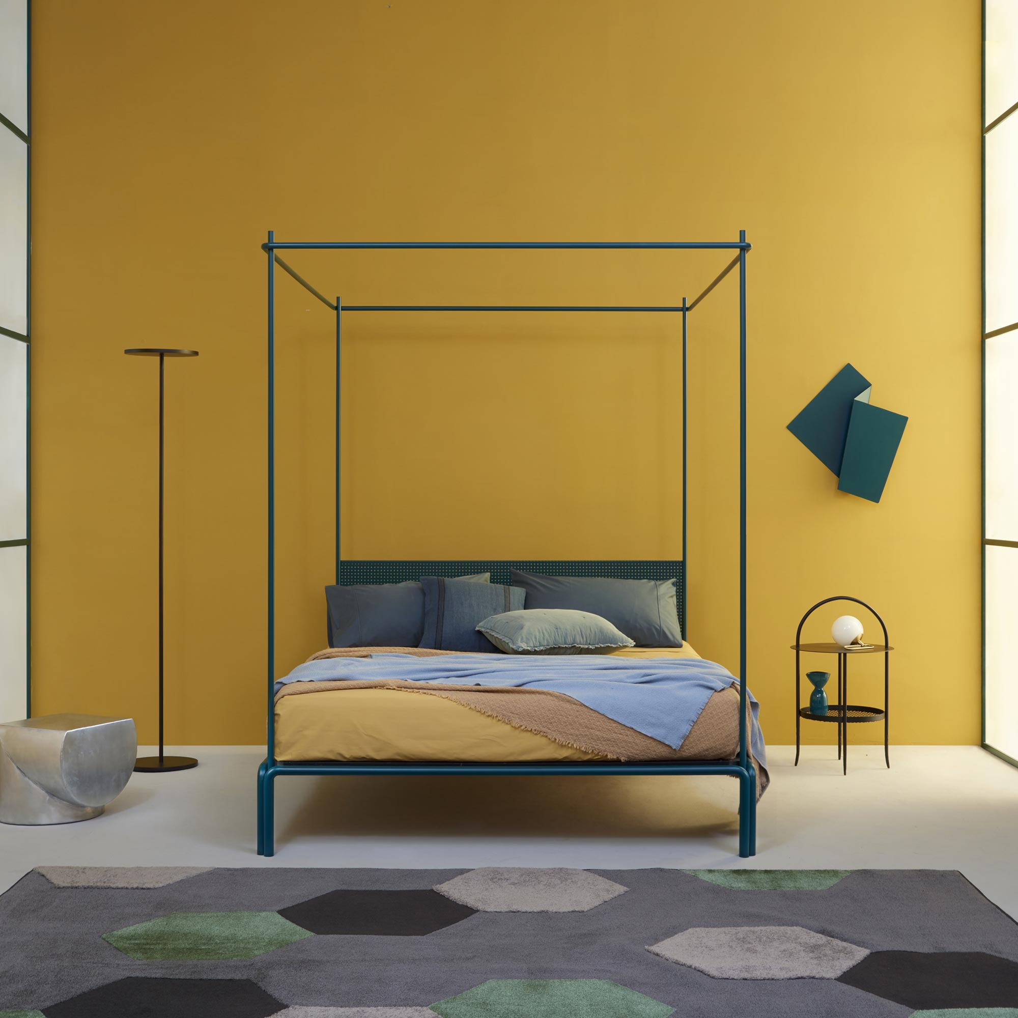 Letto a baldacchino realizzato in metallo, un connubbio tra delicatezza e tecnicità.